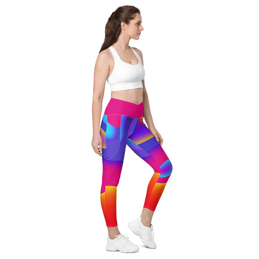 Womens Neon Crossover Leggings with Pockets (part of set)